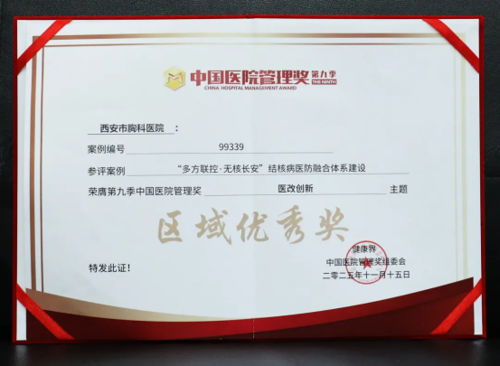中国医院管理奖作为医院管理领域的高层次专业评选平台,以评审严格、竞争激烈、权威性强而广受行业认可。两项案例同时获奖,源于我院在结核病防治领域的长期深耕,也体现了系统化思维、多部门协同与个性化服务在现代医院管理中的关键作用。医院将以此次获奖作为新起点,进一步鼓励各科室围绕专业特色,积极谋划和申报高质量管理案例,全面展现医院高质量发展成效,持续助力医院管理水平与服务能级提升。