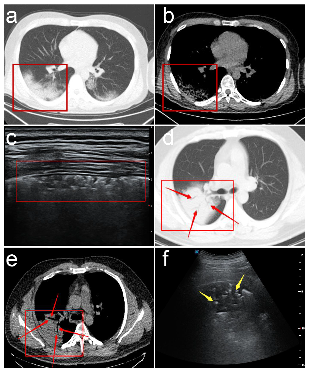这项研究为2020年1-2月份在西安市胸科医院收治经临床确诊的非重症期新型冠状病毒肺炎(COVID-19)患者共20例,均行常规二维超声及彩色多普勒超声检查,观察病灶在超声影像学下的图像特征。