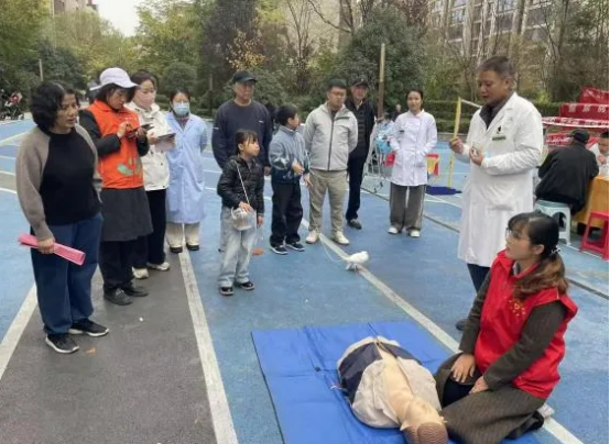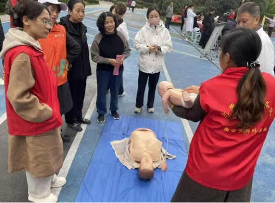 为深入践行"以人民健康为中心"的发展理念,扎实推进“一面旗帜 一个社区”党建联建活动,11月8日上午,西安市胸科医院门诊支部、医技一支部、临床三支部联合曲江街道春临五路社区党委,共同开展"医社联动护佑健康"活动,将优质医疗资源与应急救护技能送到群众家门口。