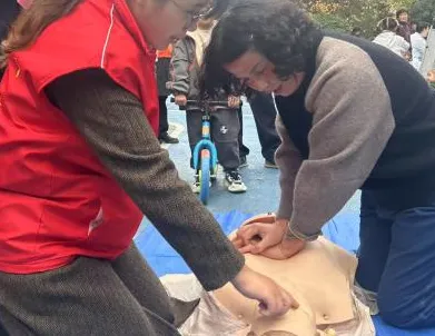 急救培训环节,我院专家特别针对社区工作者、物业人员等基层一线人员开展专项培训,提升他们第一时间发现、第一时间响应的能力。培训通过理论讲解与实操演练相结合的方式,系统讲授心肺复苏、气道异物梗阻急救等实用技能,切实提升基层应急处置能力,为社区居民织密"生命安全防护网"。