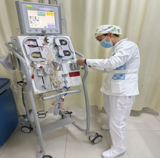 患者血锂检测结果显示浓度高达1.94mmol/L。资料表明,血清锂浓度超过1.5mmol/L即为中毒水平,若超过2.5mmol/L将严重威胁生命。结合患者当前状况,常规治疗难以快速清除体内药物,必须立即采取血液净化治疗。在郭玉琪主任的指挥下,团队当机立断,启动连续性血液净化治疗(CRRT)。