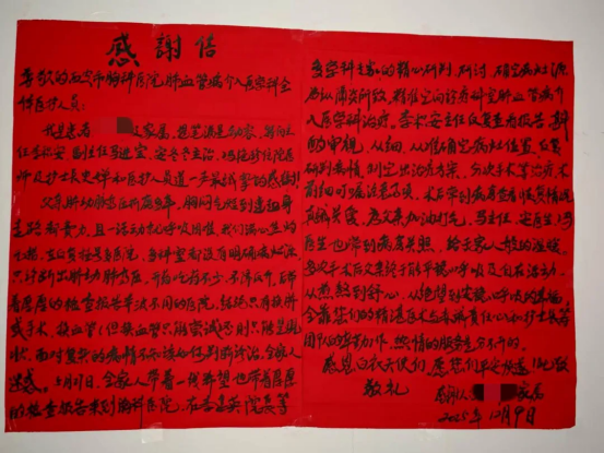 近日,59岁的张先生特意携带两面锦旗和一封感谢信来到西安市胸科医院,向李建英院长及肺血管病与介入医学科全体医护人员表达深切的感激之情。与七个月前那个被反复咳嗽、胸闷气喘折磨得痛苦不堪的他相比,如今步履轻盈、呼吸平稳的张先生仿佛重获新生——困扰他长达十五年的顽疾,终于被成功攻克。