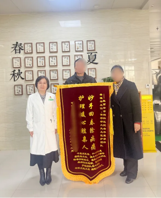 三个月后复查,她仿佛换了个人——笑容满面,步履轻快。现在我能一觉到天亮,吃饭香,还能出门晒太阳,以前想都不敢想!她拉着医生的手,泪水盈眶。这次复查,师阿姨特意带来了一面锦旗,红底金字特别亮眼:妙手仁心除病痛,护理暖心胜亲人