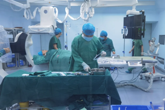 时间就是生命!心内一科争分夺秒施行急诊介入手术,于12:15成功开通闭塞病变,植入新一代药物洗脱支架,血流瞬间恢复畅通。从患者入院到血管开通仅用25分钟(门球时间),远低于国际标准的90分钟。