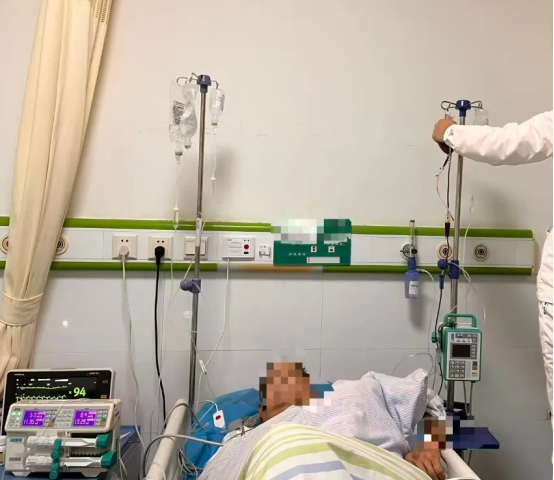 面对如此危急情况,消化科第一时间启动应急抢救预案,卢王主任亲自指挥,迅速组建了由经验丰富的医护骨干构成的抢救小组。抢救小组争分夺秒,立即为患者建立多条静脉通道,快速进行液体复苏,并紧急协调输血科,为患者输注红细胞悬液及血浆,以稳定循环、纠正休克,为后续决定性治疗争取宝贵时间。