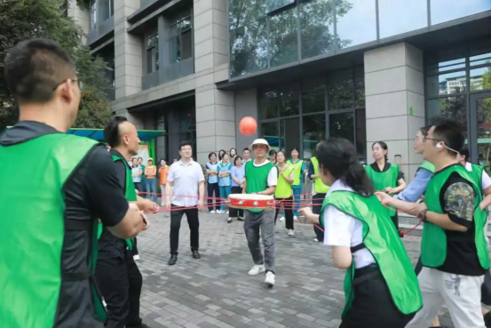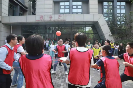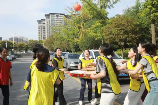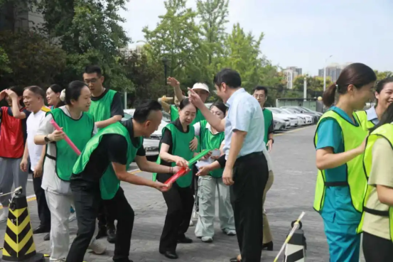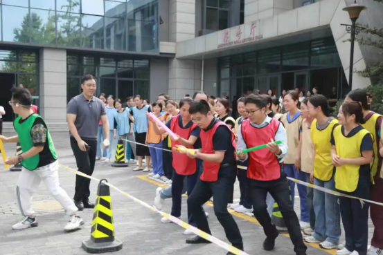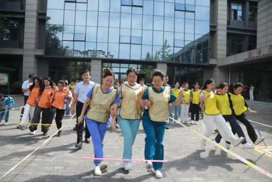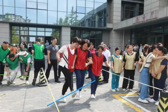 在掌声与欢呼声中,团建活动正式开始。由8个支部牵头组建了8支队伍,成员包括医院带教老师、职工以及社区学校教师代表。大家以队友的身份携手参与“珠行万里”“勾肩搭脚”“群龙取水”“丑小鸭竞走”和“同心鼓”五个趣味项目。各位院领导也踊跃参与其中,在紧张有序的比拼中,大家团结协作、全力以赴,笑声与欢呼声此起彼伏。尤其是医院教师与社区教师并肩作战的场景,成为活动中最温馨、最动人的画面。