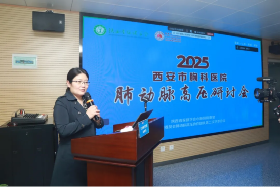 在专题汇报环节,尚粉青副主任介绍了医院肺高压相关工作成果。作为以胸部疾病诊疗为特色的专科医院,我院在肺高压科研与临床方面积累了丰富经验,目前已开设肺高压专病门诊及专科病房,构建了由心内、呼吸、介入、影像、超声等多学科协作的MDT诊疗团队,常规开展右心导管检查、肺动脉造影、球囊扩张及支架植入等介入技术。同时,医院依托“西安市肺动脉高压及相关肺疾病重点实验室”,持续推动该领域的基础与临床研究。