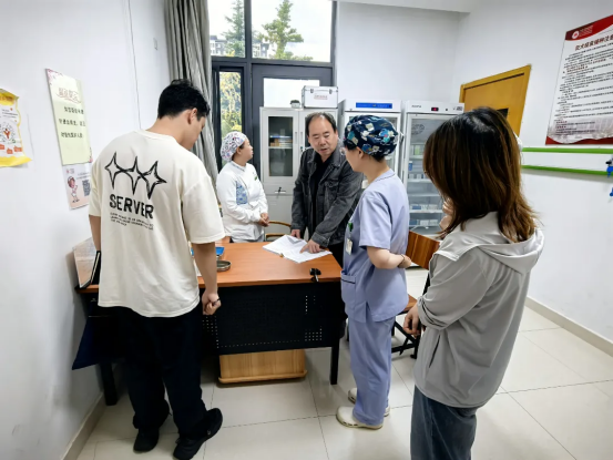 检查组一行深入犬伤门诊现场,不仅查看了硬件设施的运行状况,更对门诊管理的各个环节,包括人员资质、就诊流程、疫苗的储存管理与冷链监控、消毒隔离措施以及病历文书书写规范等核心内容进行了“把脉问诊”。通过查阅资料、现场问询等方式,专家组对我院犬伤门诊的标准化运作有了全面深入的了解。